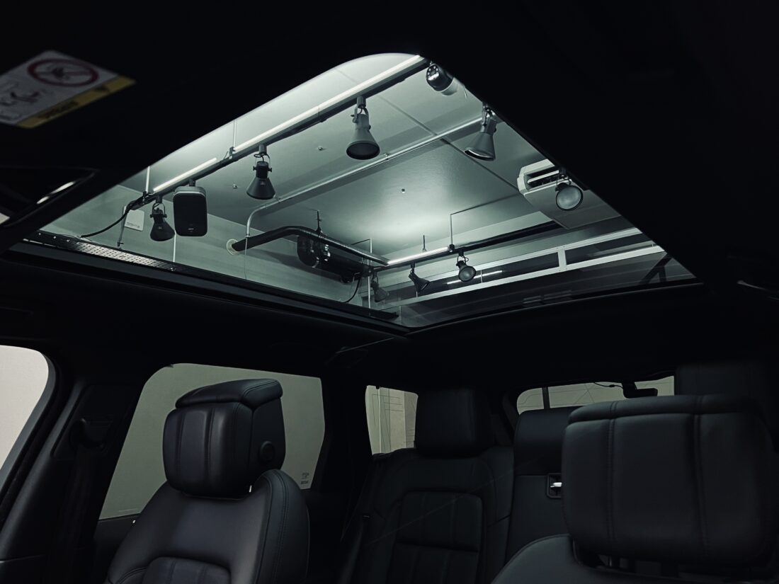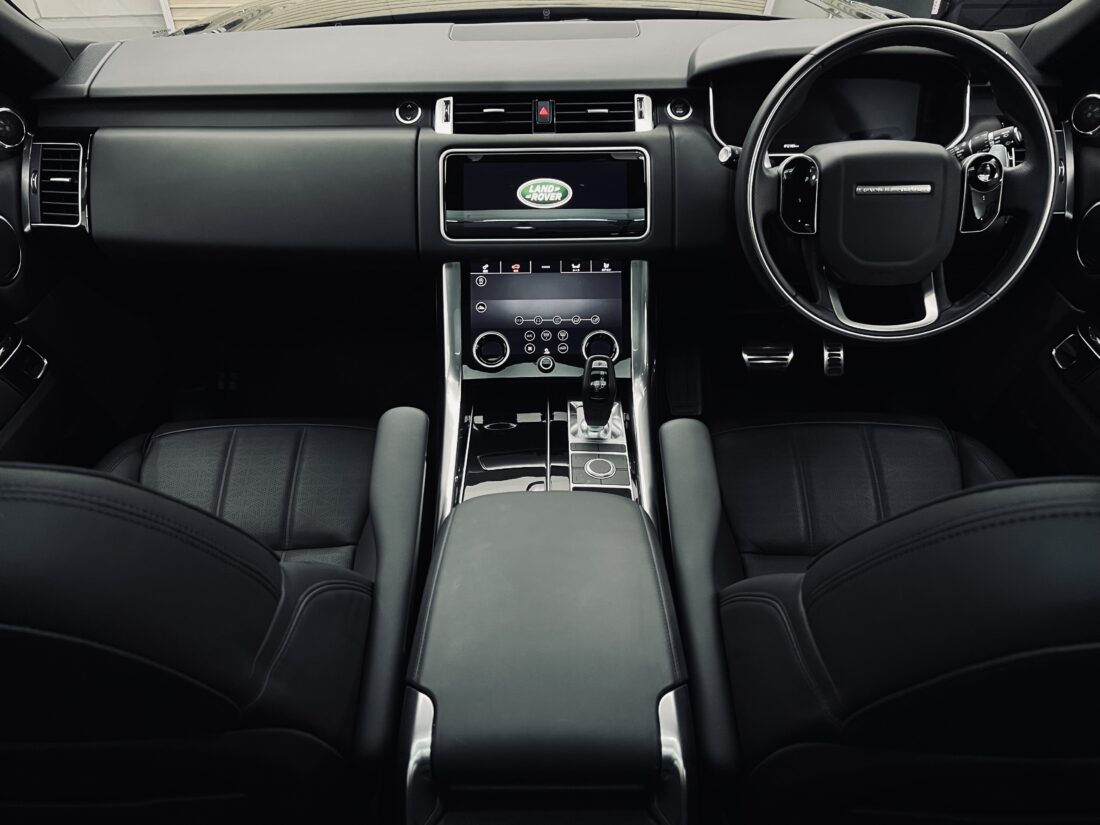 ゆったりとした空間の広がる後部座席。美しいデザインとラグジュアリーな雰囲気はランドローバーでしか味わえない世界観があります。
