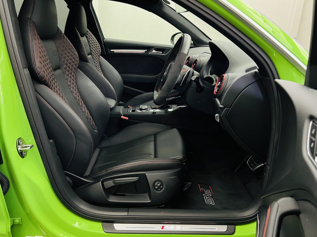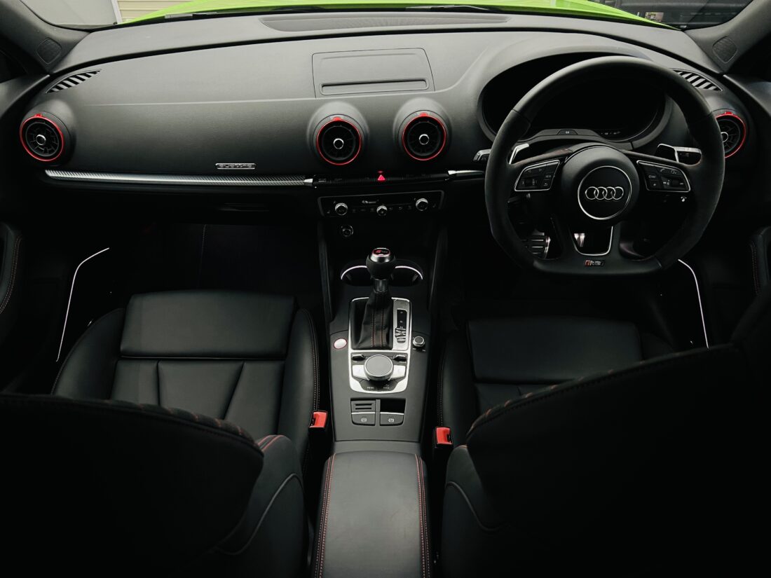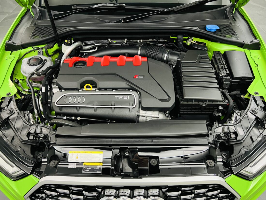400馬力という圧倒的なパワーを、アウディが誇るフルタイム四輪駆動システム「クワトロ」が路面に確実に伝え、日常域からサーキットまで楽しめる素晴らしいホットハッチとなっております。