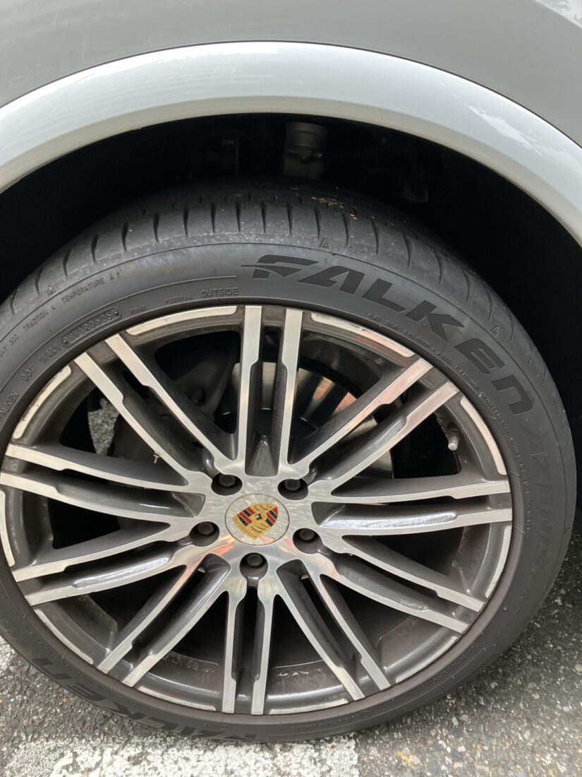 21インチの911ターボデザインアルミホイールは、カイエンの中でも特に人気の高い装備の一つです。スポーティーさと高級感を兼ね備えたデザインで、プラチナエディションの特別感をさらに引き立てます。足元の迫力が増すことで全体の印象が引き締まり、中古車市場でも装着車は注目されやすい傾向にあります。ホイールコンディションも良好で、プラス評価となりました。